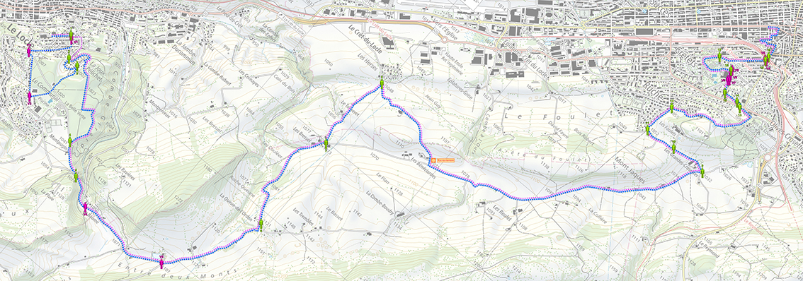 Arrivée à La Chaux-de-FondsRunning en bleu / Walking en rose